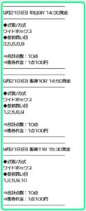 一旦、ご依頼頂いていた9月分の無料予想をまとめます。1日3鞍も無料予想提供がありました(笑)